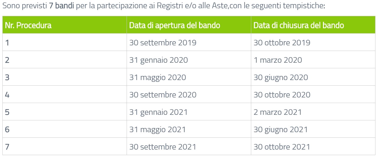 Impianti ammissibili – Potranno partecipare ai bandi per la selezione dei progetti da iscrivere nei registri gli impianti: